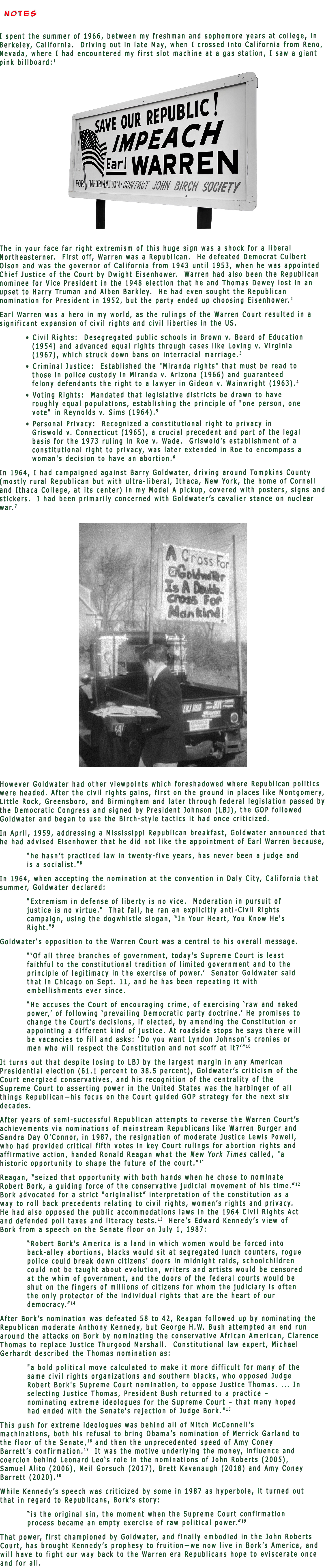 Point of View # 194Goldwater & the Supreme CourtOct 19, 20254ShareShare Point of View: Photo EditorialsLeave a comment This photo of the billboard was taken by Bob Fitch in Mississippi.Earl WarrenCivil rightsCriminal justiceVoting rightsPersonal privacyGoldwater on nuclear warGoldwater calls Warren a socialistGoldwater's confirmation speechGoldwater on the Supreme CourtReagan & the CourtBorkBork's positionsKennedy on BorkBush & ThomasMcConnell & GarlandMcConnell & Coney BarrettLeonard LeoThe original sin