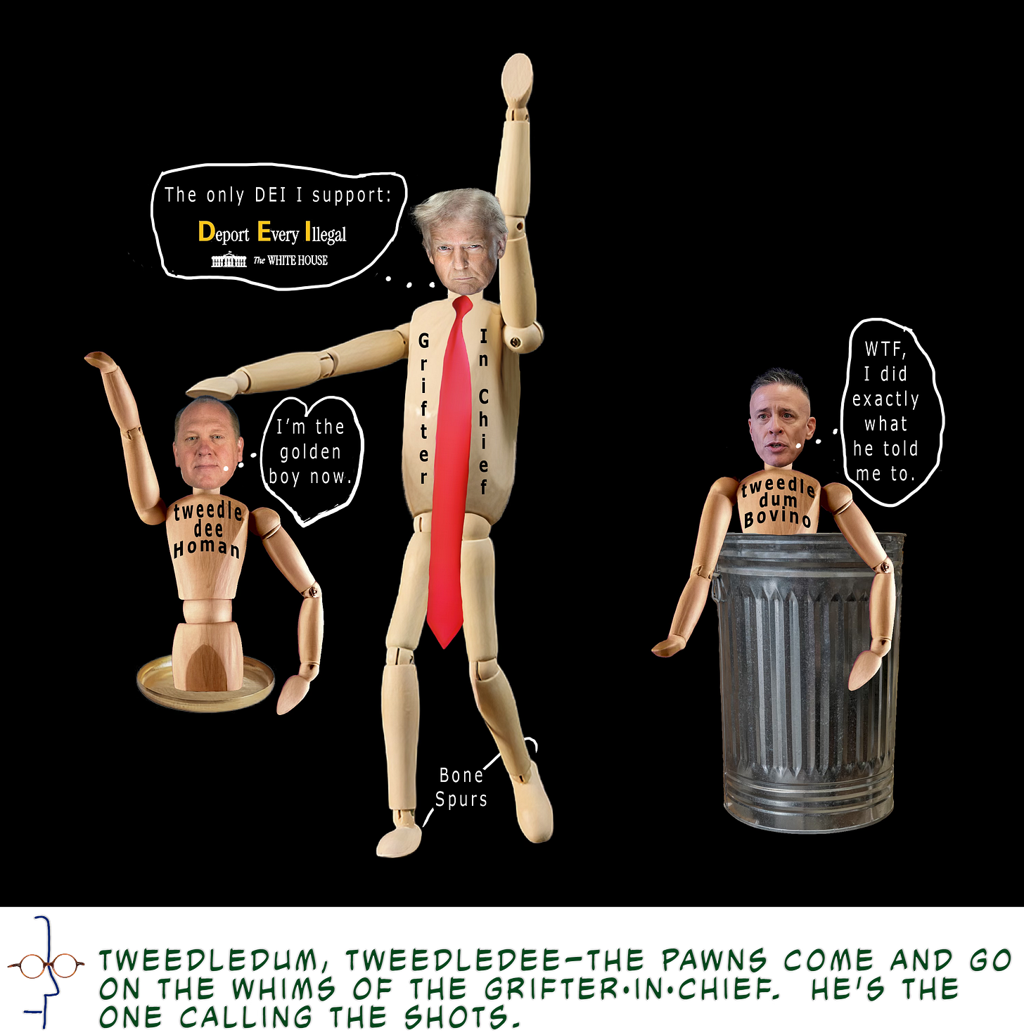 Point of View # 209Tweedledum and TweedledeeFeb 01, 20264ShareShare Point of View: Photo EditorialsLeave a comment De-escalateCNBC headlineChanging toneNo, not at allInsurrectionalistSick & tiredHomanNoemDon't be a fool