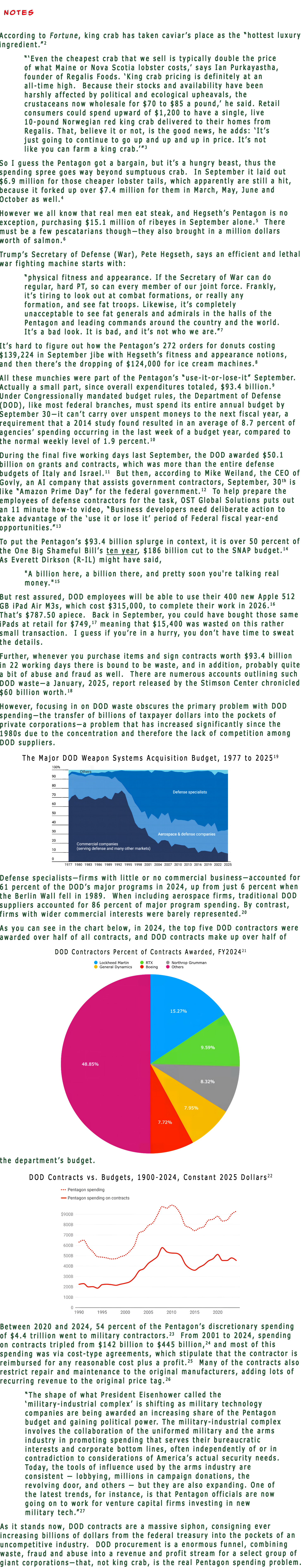 Point of View # 215The DOD SiphonMar 15, 20264ShareShare Point of View: Photo EditorialsLeave a comment King crabLuxury ingredientFortuneLobster tailsRibeyesSalmonHegsethFit or fat$93.4 billionLast week in September$50.1 billionGovlyOST Global Solutions videoHalf of Shameful SNAP cutA billion here, a billion thereApple iPadsSept 2025 iPad retailStimson Center reportDOD acquisition budgetDefense specialistsDOD contracts awardedContracts vs. budgets54%Amount of DOD contractsCost-type contractsRecurring revenueThe military-industrial complex